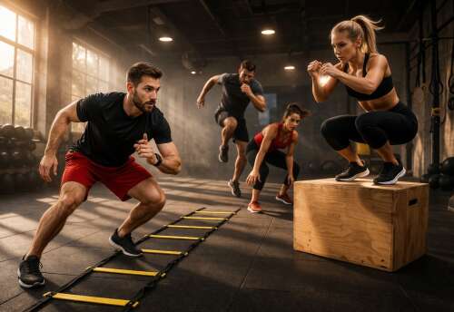 Athletic Fitness ist ein vielseitiges Ganzkörpertraining für alle, die ihre Leistungsfähigkeit gezielt verbessern wollen. Plyometrische Übungen für Schnelligkeit, Koordination und Reaktivität. Funktionale Übungen für alltagsnahe Kraft, Stabilität und effiziente Bewegungsmuster. Mobility für Beweglichkeit, Gelenkgesundheit und nachhaltige Leistungsfähigkeit. Explosive HIIT-Übungen für maximale Herz-Kreislauf-Gesundheit. Isometrische Kraftübungen für Kontrolle und tiefliegende Muskelaktivierung.