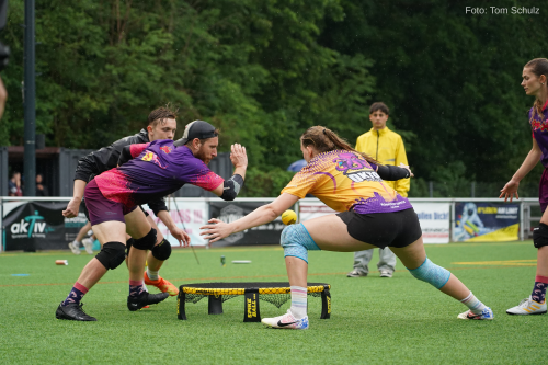 Ihr habt Lust auf eine Sportart, die nicht nur eure körperlichen, sondern auch kognitiven Fähigkeiten beansprucht? Dann seid ihr hier genau richtig! Roundnet (auch bekannt unter einem Herstellernamen "Spikeball") ähnelt dem allbekannten Volleyball und vereint Spielwitz, Fairplay, Koordination und Ballgefühl. Grundlegend versuchen hierbei zwei Teams á zwei Spieler:innen den Ball so geschickt mit der Hand auf das runde Netz am Boden zu schlagen, dass das gegnerische Team den Ball nicht erreicht.