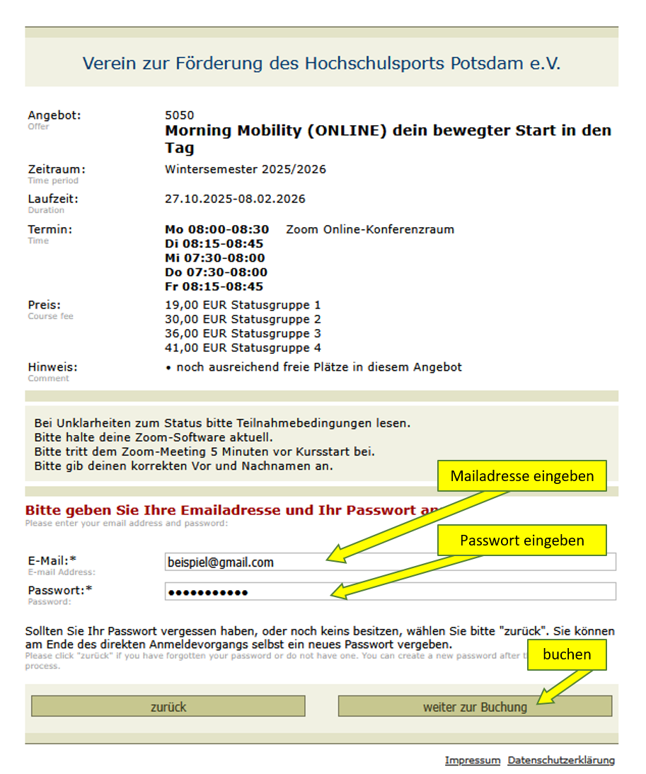 Bald startet unser neues Kursprogramm und viele unserer beliebtesten Kurse sind oft schon nach kurzer Zeit ausgebucht - da zählt manchmal jede Sekunde! Falls ihr noch keinen Account bei uns haben solltet, aber trotzdem bei der Anmeldung schnell und unkompliziert dabei sein wollt, dann empfehlen wir euch, bereits vor dem Buchungsstart einen eigenen Account anzulegen. So sind eure persönlichen Daten bereits hinterlegt und ihr könnt euren Lieblingskurs mit nur wenigen Klicks buchen.
